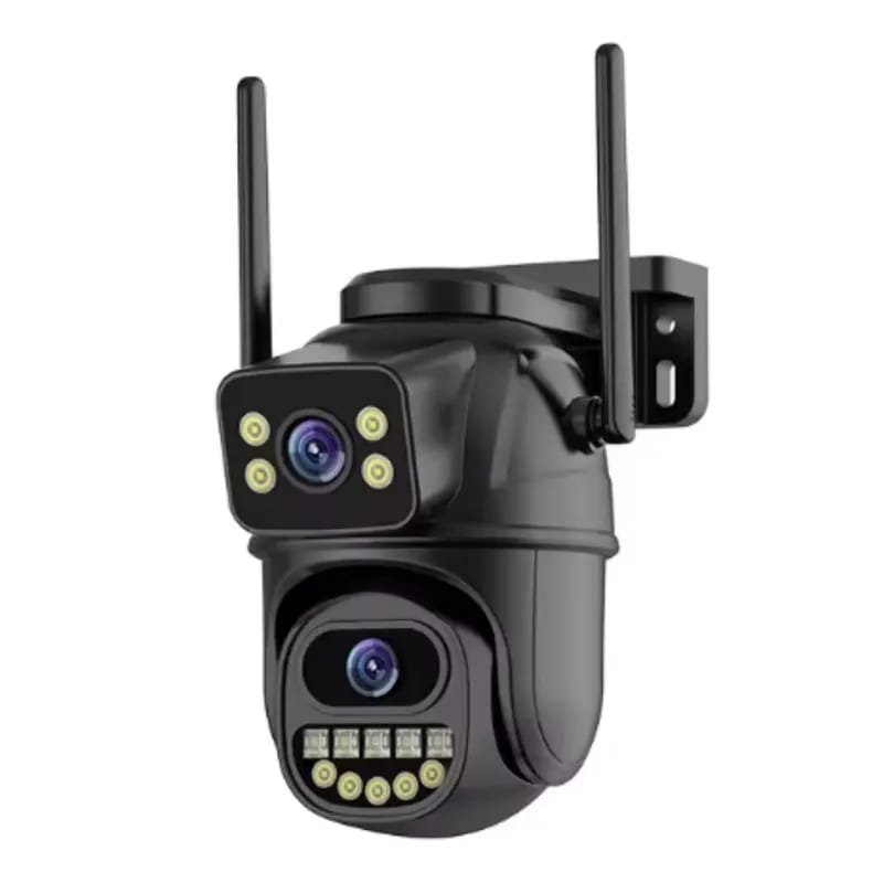 Resolución: QHD | Megapíxeles: 6MP (3MP+3MP) | App: ICSEE | Lentes: 2 (1 rotatorio 360°, 1 fijo) | Visión nocturna: infrarroja | Protección: IP66 | Alarma programable